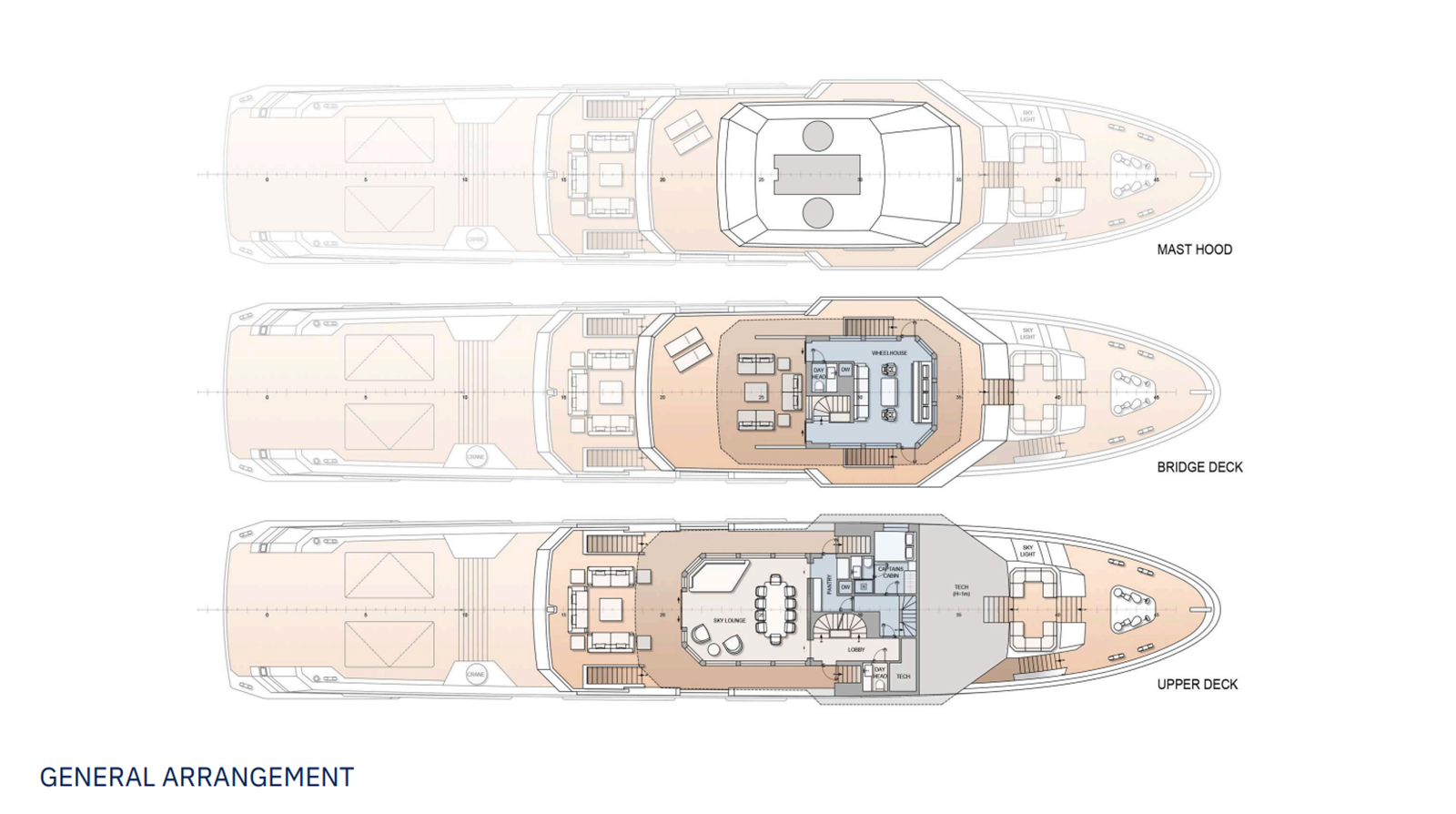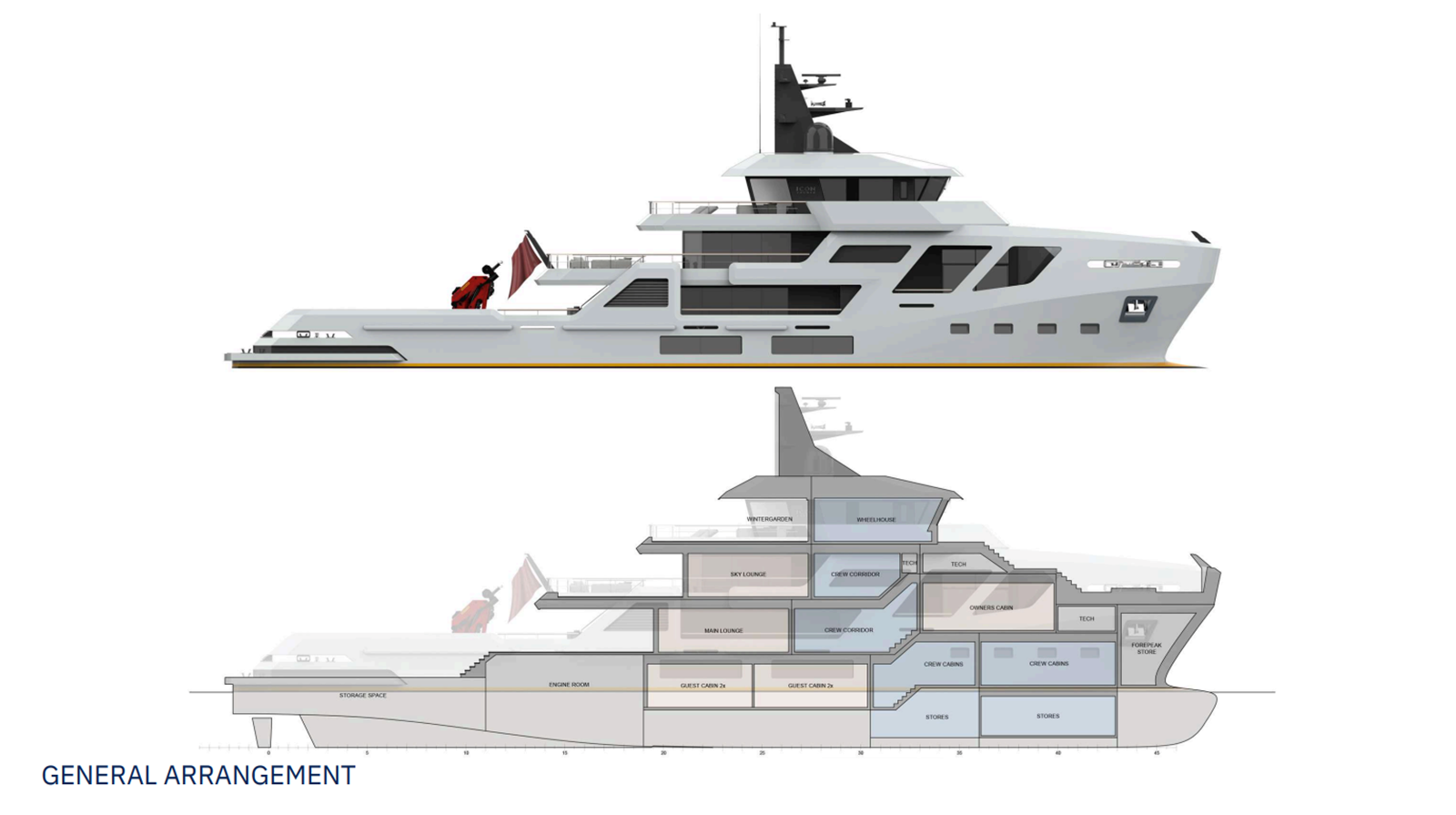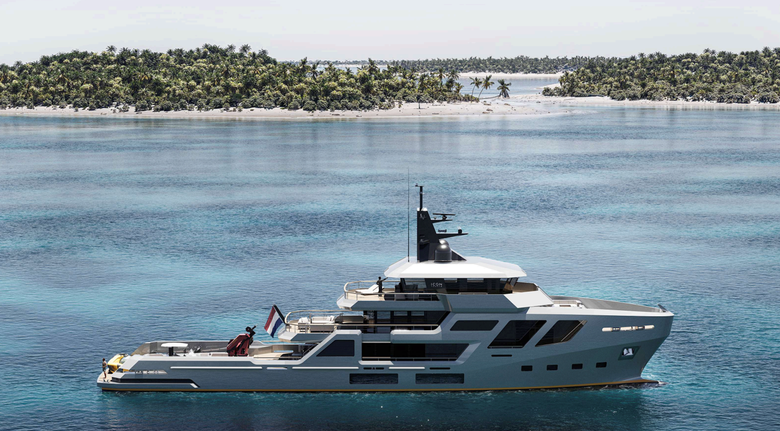 | Name: MISSION M Type: Semi Custom Explorer Yacht Builder: ICON YACHTS Delivery Time: 42 Months after Contract signature Length (M/FT) 50.45 / 165’51” Hull Beam (M/FT) 8.93 / 29’29” Max. Beam (M/FT) 9.60 / 31’49” Draft (M/FT 2.80 / 9’18” Hull Material Steel Superstructure Material Steel Gross Tonnage 499GT Class Lloyds Register, Polar Code C, Ice Class 1D Flag Marshal Islands Guest Accommodation 2 Owners on Private Owners Deck, 8 Guests in 4 Staterooms Crew Accommodation 11 Crew in 7 Cabins Exterior Designer Weel Sluijter Design Interior Designer Carla Guilhem Design Naval Architect ICON YACHTS Main Engines 2x CATERPILLAR C32, 895kW @1,800-2,100 rpm, Future proofed with US EPA Tier 4 / IMO TIER III Auxiliary Generators 2x Shaft Generator, 99kW 1x CATERPILLAR C4.4, 99kW @1,500rpm, 1x CATERPILLAR C4.4, 65kW @1,500rpm Propulsion Twin-screw shaft drive with two fixed-pitch propellers and dual rudders Bow/Stern Thruster 80kW , Electrical Stabilisation 1x pair of QUANTUM fixed Fin Stabilisers, Zero Speed Dynamic Positioning Included Speeds 10kn economic Cruising Speed 14kn max Speed Range 10,000 nm @6kn 6,000nm @10kn 4,000nm @12kn Deck Material BOLIDT Epoxy artificial Teak Deck