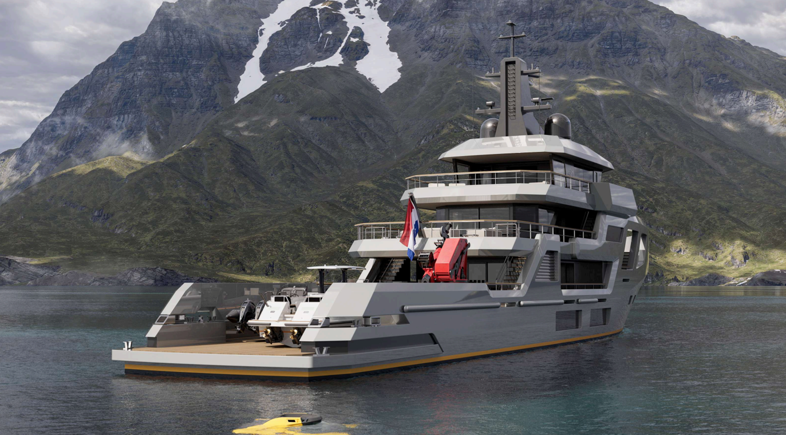 1x 8.5m Expedition Tender, 1x 6x RHIB, 1x 3x Pax Submersible Cranes 1x PALFINGER Folding Knuckle Boom Crane, 9.6t SWL @15m outreach.