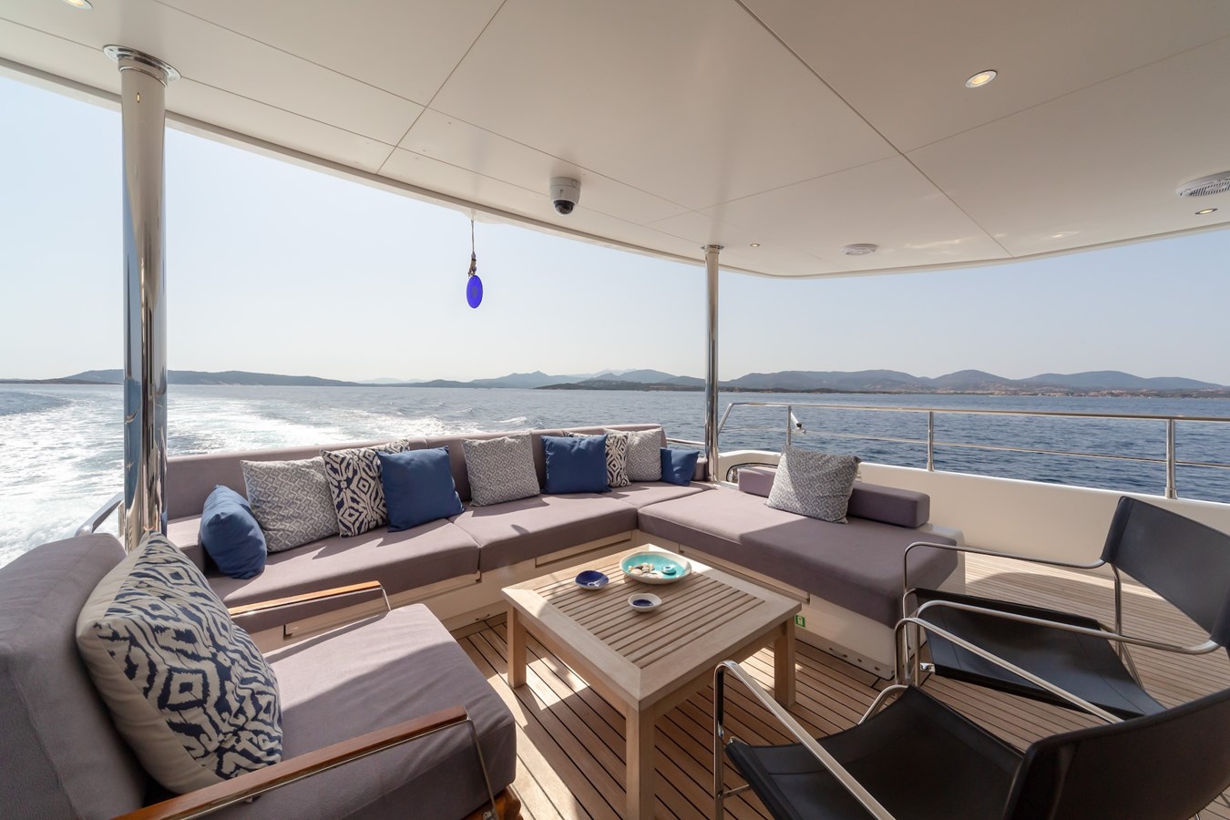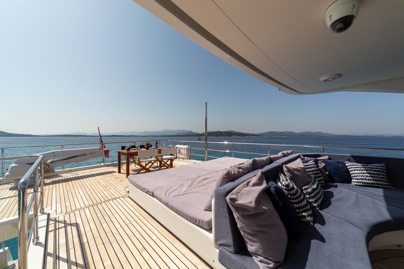 Flybridge: Drop down Samsung LED TV 46" with Dune HD Smart B1 Player, SAT TV receiver, Sonos connect, 8 x JL Audio 8.8" waterproof speakers