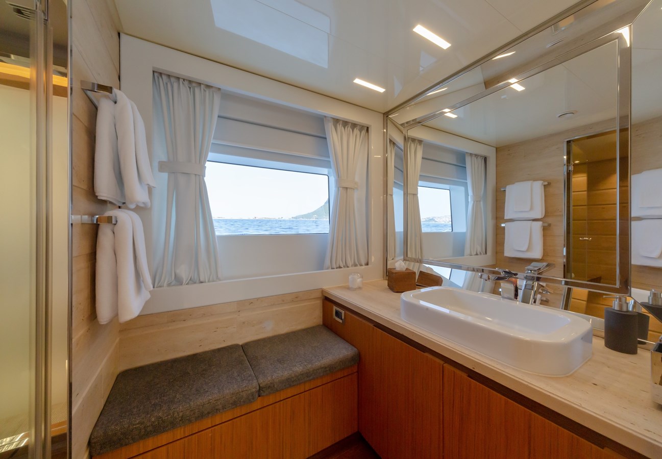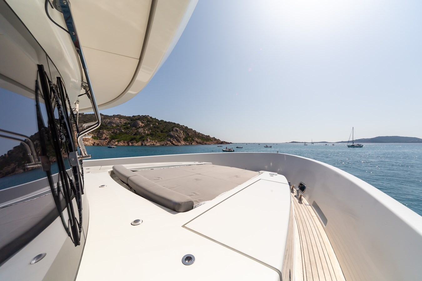 External main deck: 4 x JL Audio 8.8" waterproof speakers in cockpit, 1 x JL Audio 10" waterproof speakers in the cockpit, 2 x JL Audio 8.8" waterproof speakers in the bow area with up and down volume control