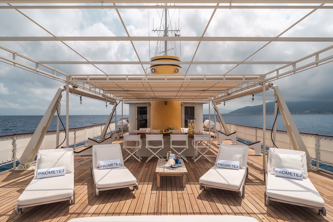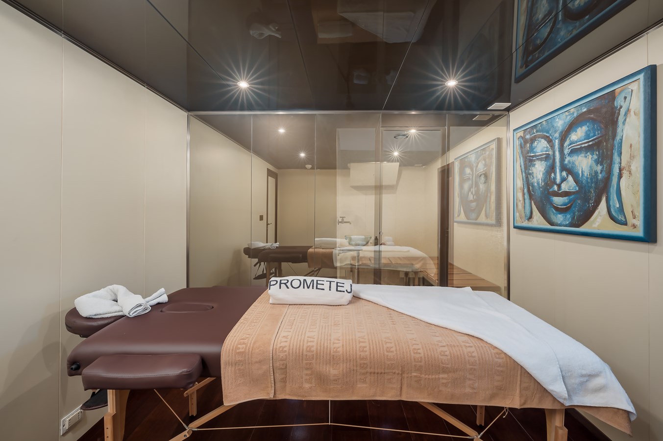 The gym (flybridge) is equipped with Technogym machines (2025) and has a wonderful view on the Ocean.The spa room with steam shower and massage table is situated on the main deck. A sauna could be fitted too. A perfect surrounding for longevity, well-being and relaxation.