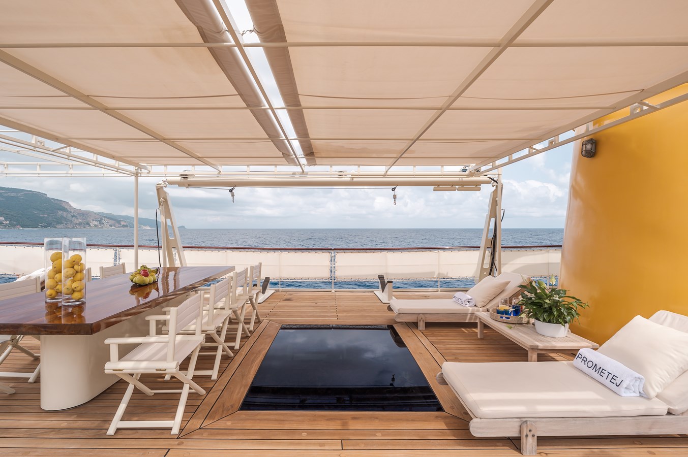 | Her features include Starlink satellite communications, Technogym gym, Steamroom, WiFi and air conditioning. |