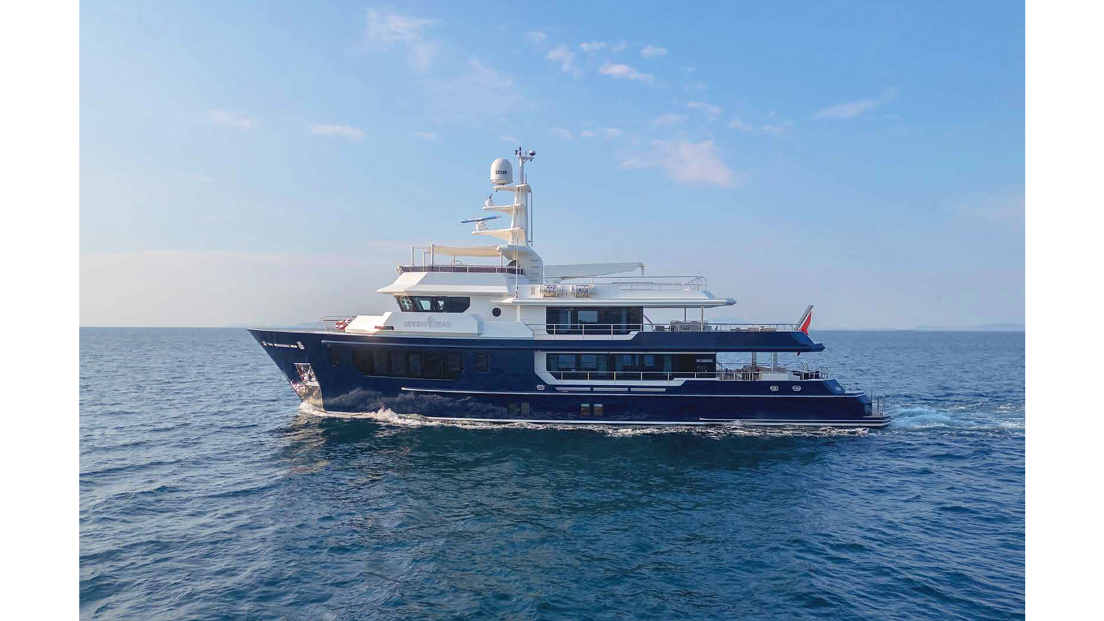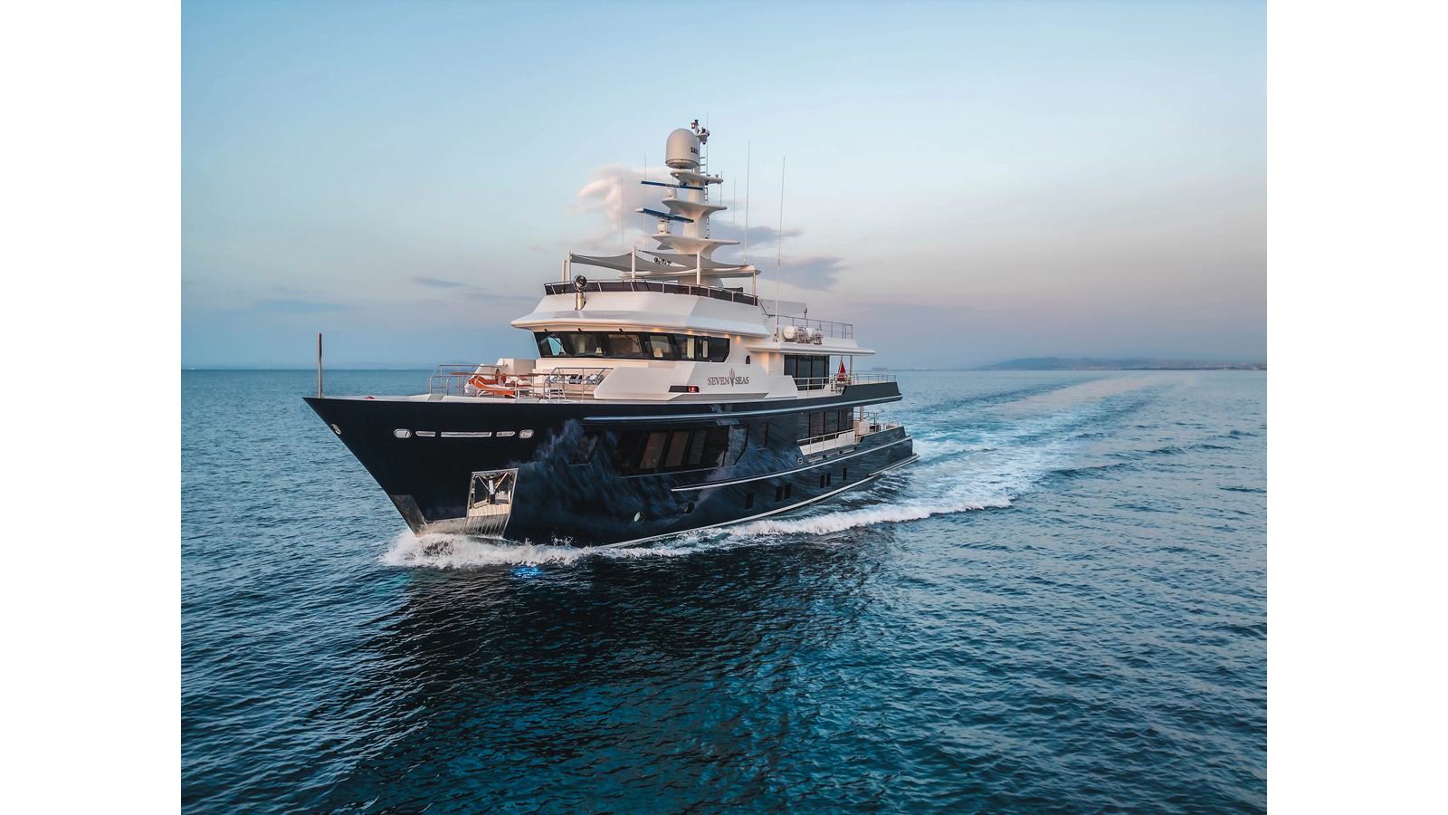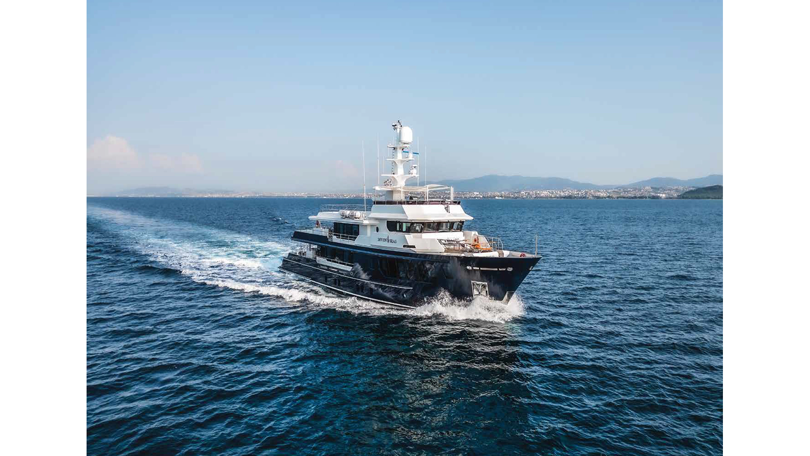 SEVEN SEAS, the 2024 RMK 120 is a timeless expedition yacht designed by Vripack Yacht Design based in Holland and built by Turkish Shipyard RMK. SEVEN SEAS is a true global explorer featuring key design features that allow her to transit to remote regions of the world: substantial 37m at 399GRT, full displacement steel hull with aluminum superstructure, powered by Caterpillar C32 engines that give her a 3,600nm range a cruise, a substantial 4,000kg davit allows her to carry a significant tender on deck, Quantum zero speed stabilizers assure complete comfort even in foul weather, and built to commercial class allowing for both private or charter operations.