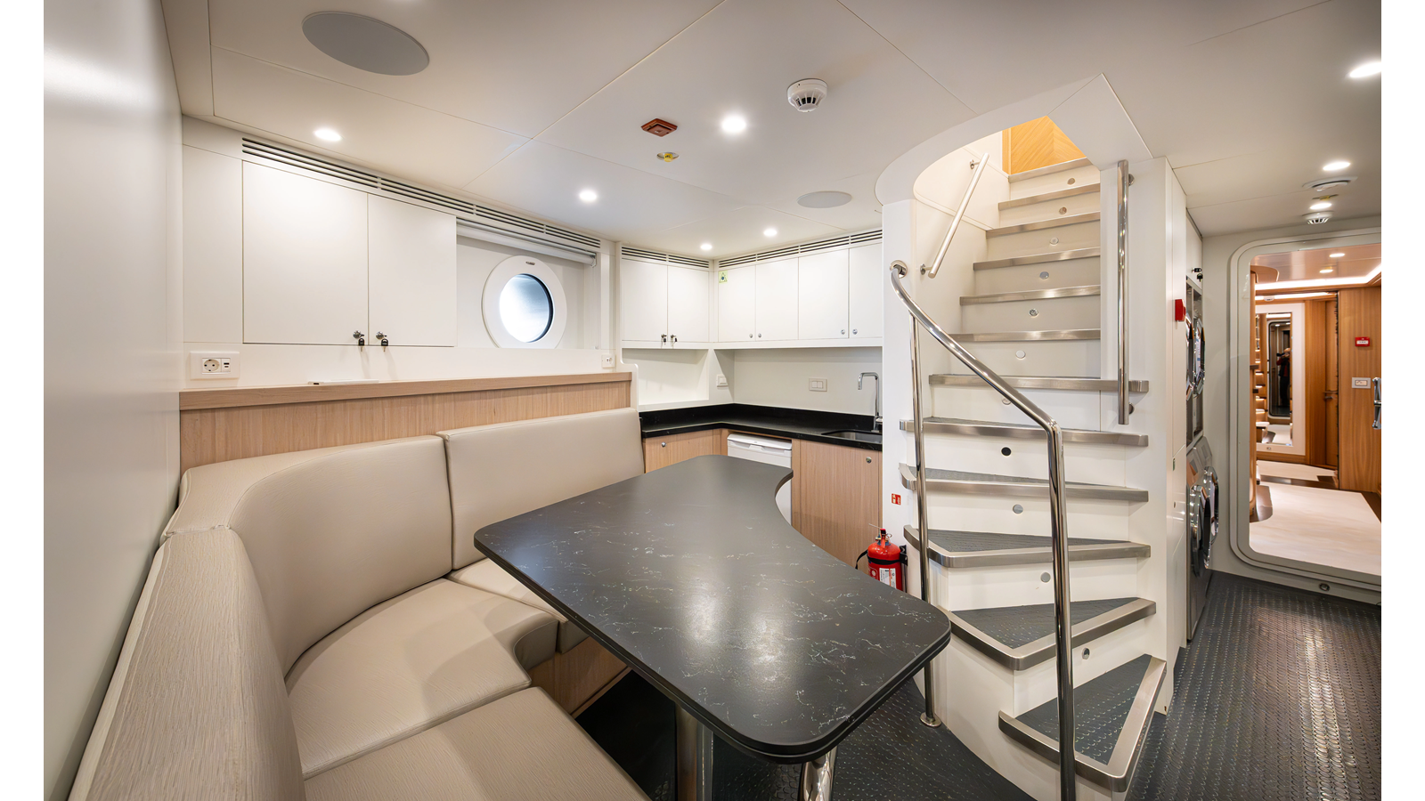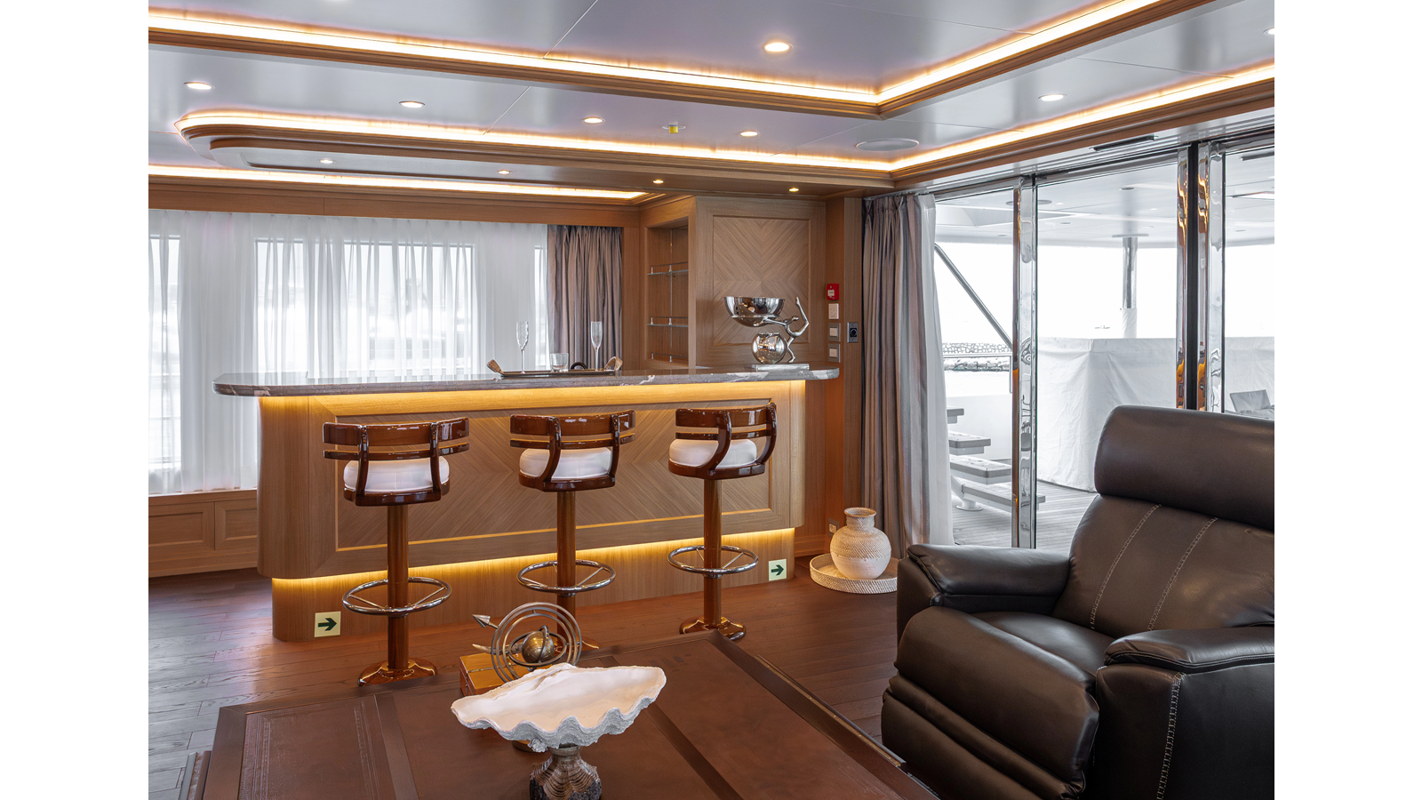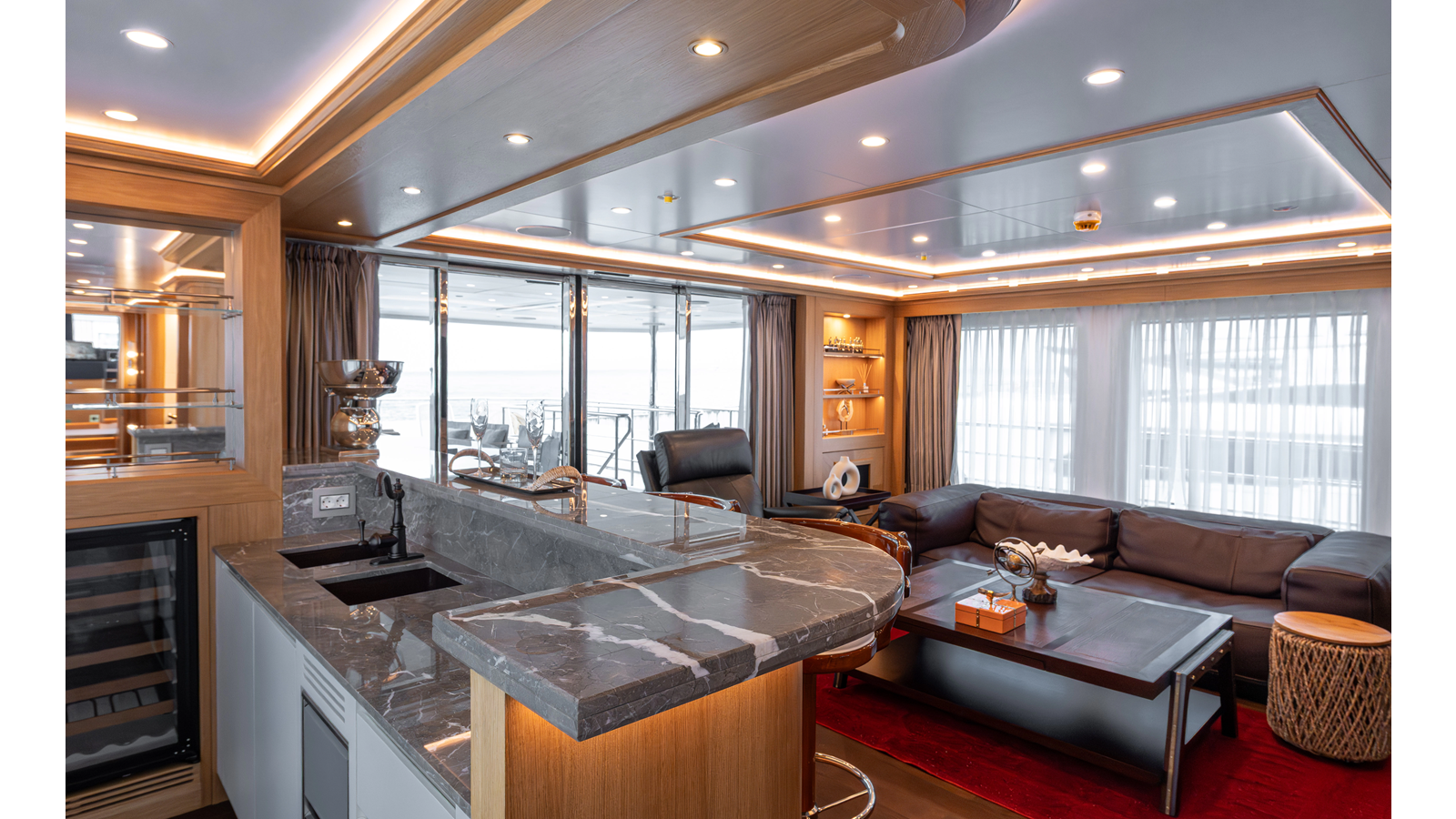 SEVEN SEAS, the 2024 RMK 120 is a timeless expedition yacht designed by Vripack Yacht Design based in Holland and built by Turkish Shipyard RMK. SEVEN SEAS is a true global explorer featuring key design features that allow her to transit to remote regions of the world: substantial 37m at 399GRT, full displacement steel hull with aluminum superstructure, powered by Caterpillar C32 engines that give her a 3,600nm range a cruise, a substantial 4,000kg davit allows her to carry a significant tender on deck, Quantum zero speed stabilizers assure complete comfort even in foul weather, and built to commercial class allowing for both private or charter operations.