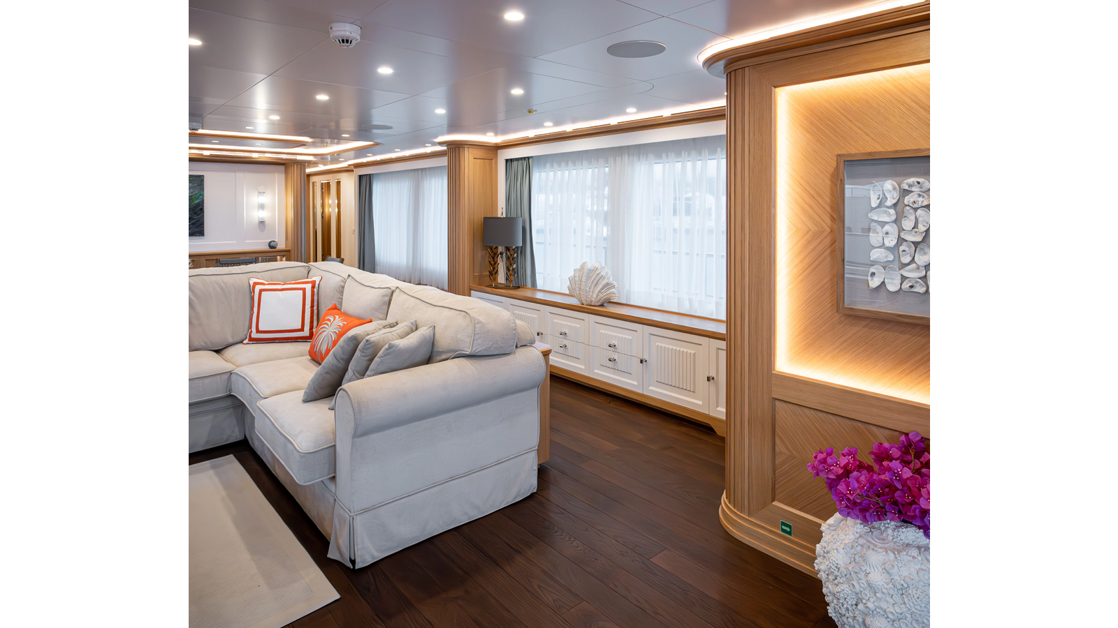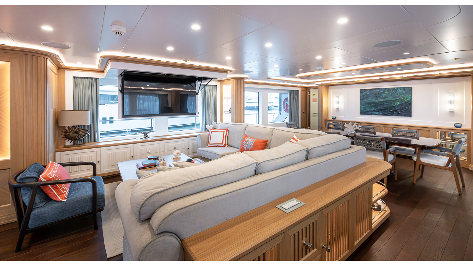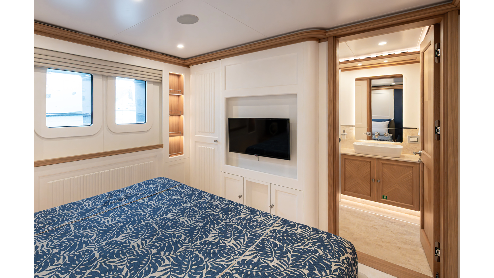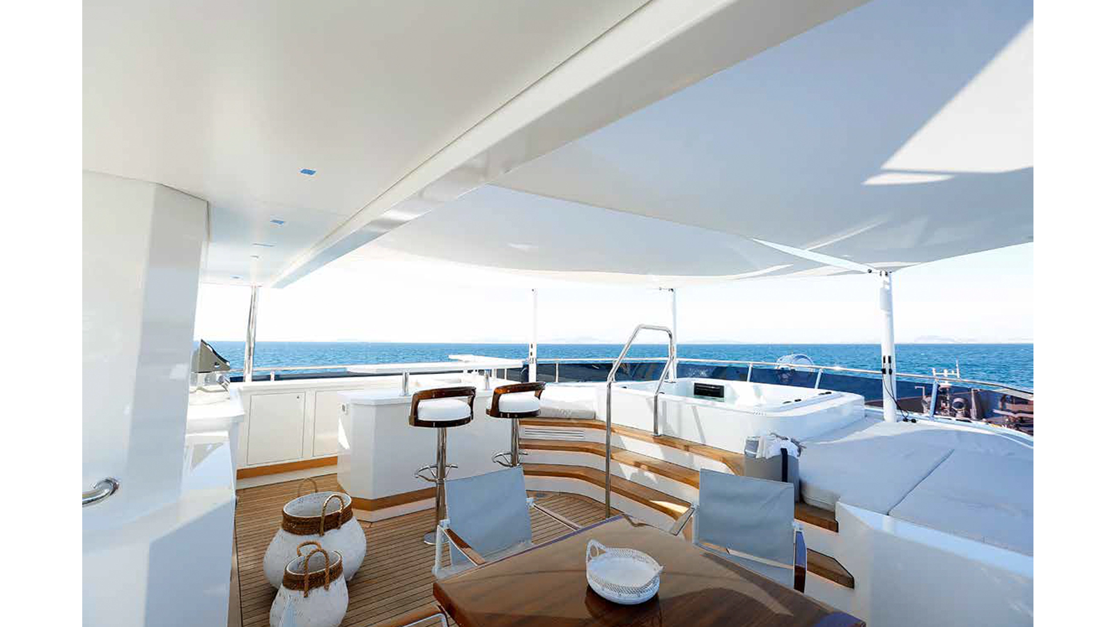 SEVEN SEAS has a classic interior decor from Epikworks, sleeps 10 guests in 5 cabins including spacious master ensuite located forward on the main deck. She has a fantasic sundeck complete with full service bar, jacuzzi, and sunpads. For day to day operations she sleeps up to 7 crew in 3 cabins located on the lower deck along with the mess area while the captain's cabin is located on the upper deck adjacent to the wheelhouse. Commercial grade galley, Atlas shorepower converters, lazzarrette area back aft for water sports/dive equipment & spare parts, proper bridge/wheelhouse.
