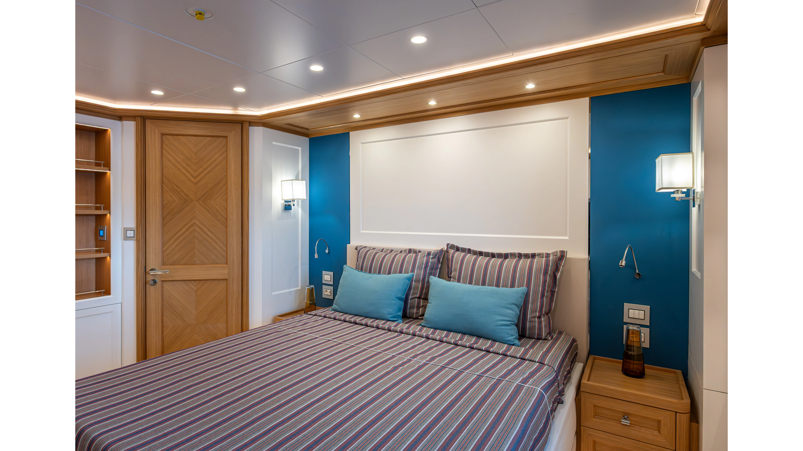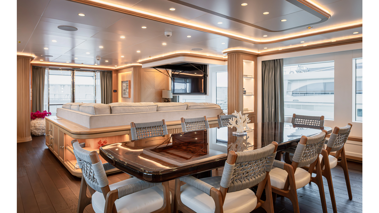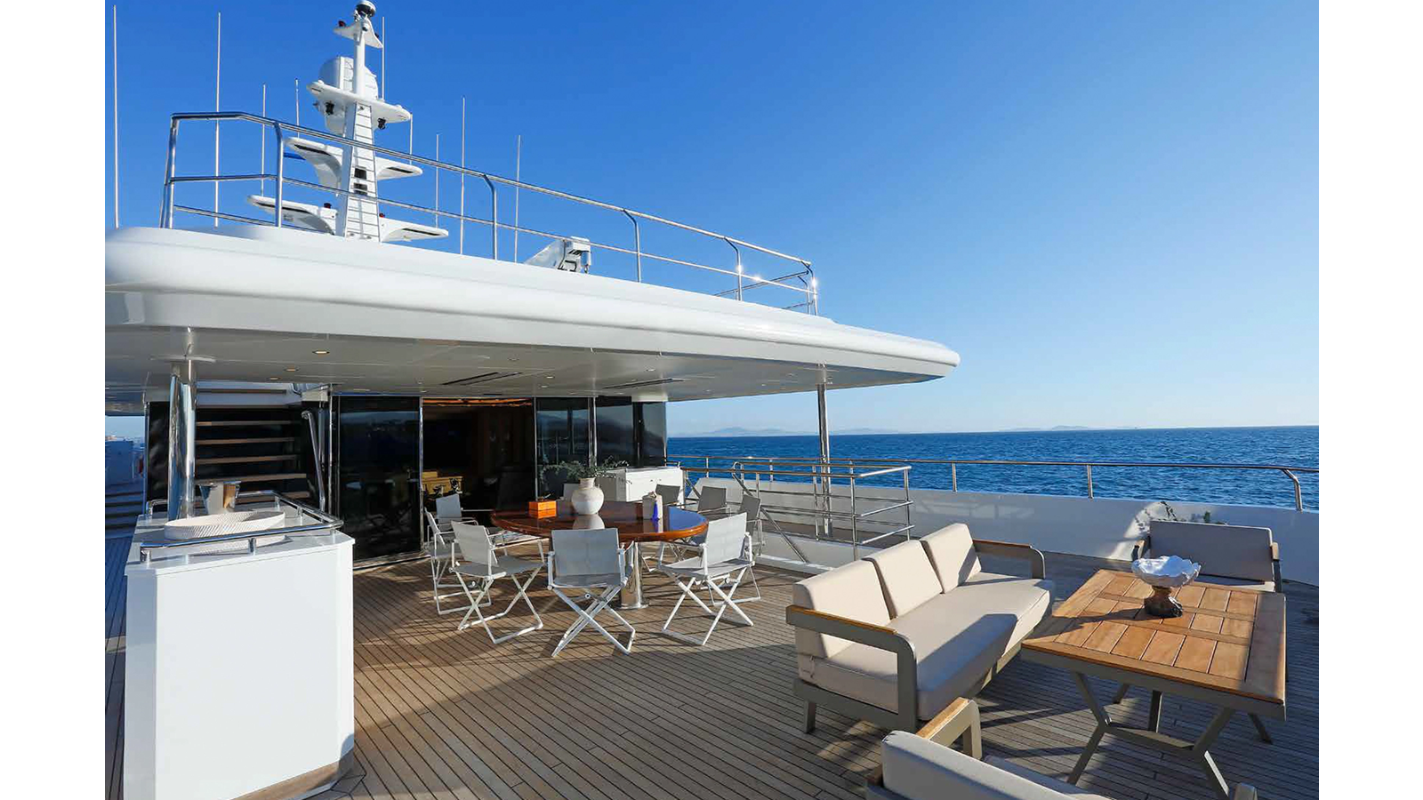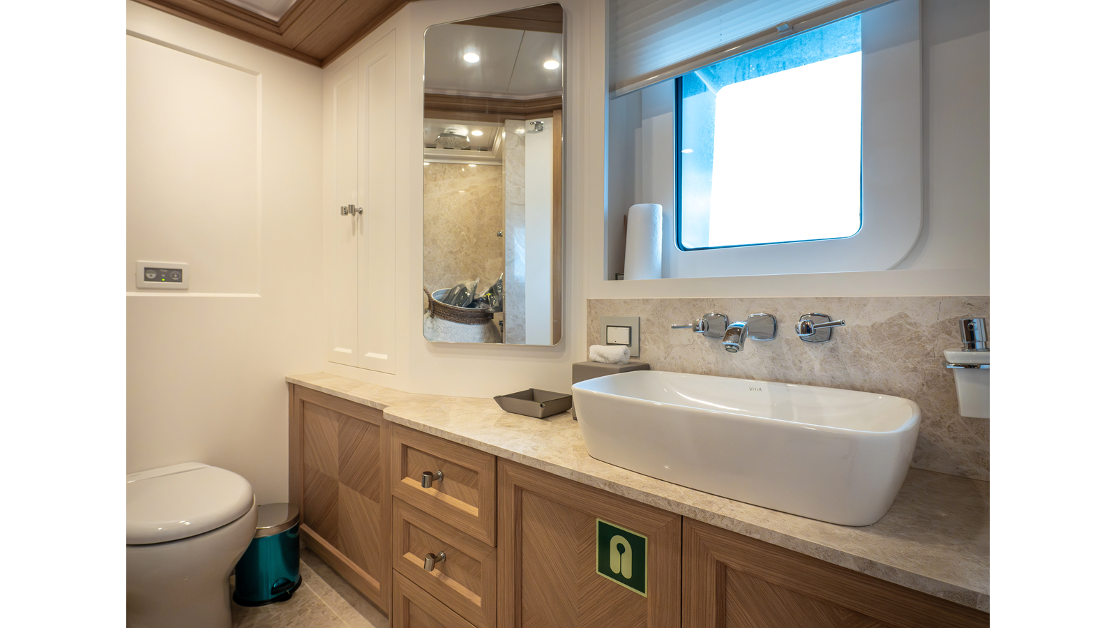 SEVEN SEAS has a classic interior decor from Epikworks, sleeps 10 guests in 5 cabins including spacious master ensuite located forward on the main deck. She has a fantasic sundeck complete with full service bar, jacuzzi, and sunpads. For day to day operations she sleeps up to 7 crew in 3 cabins located on the lower deck along with the mess area while the captain's cabin is located on the upper deck adjacent to the wheelhouse. Commercial grade galley, Atlas shorepower converters, lazzarrette area back aft for water sports/dive equipment & spare parts, proper bridge/wheelhouse.