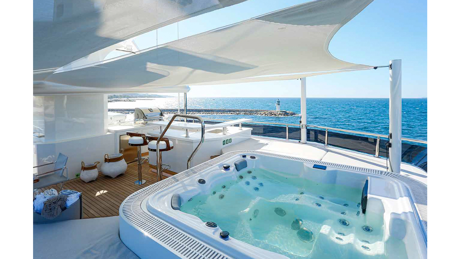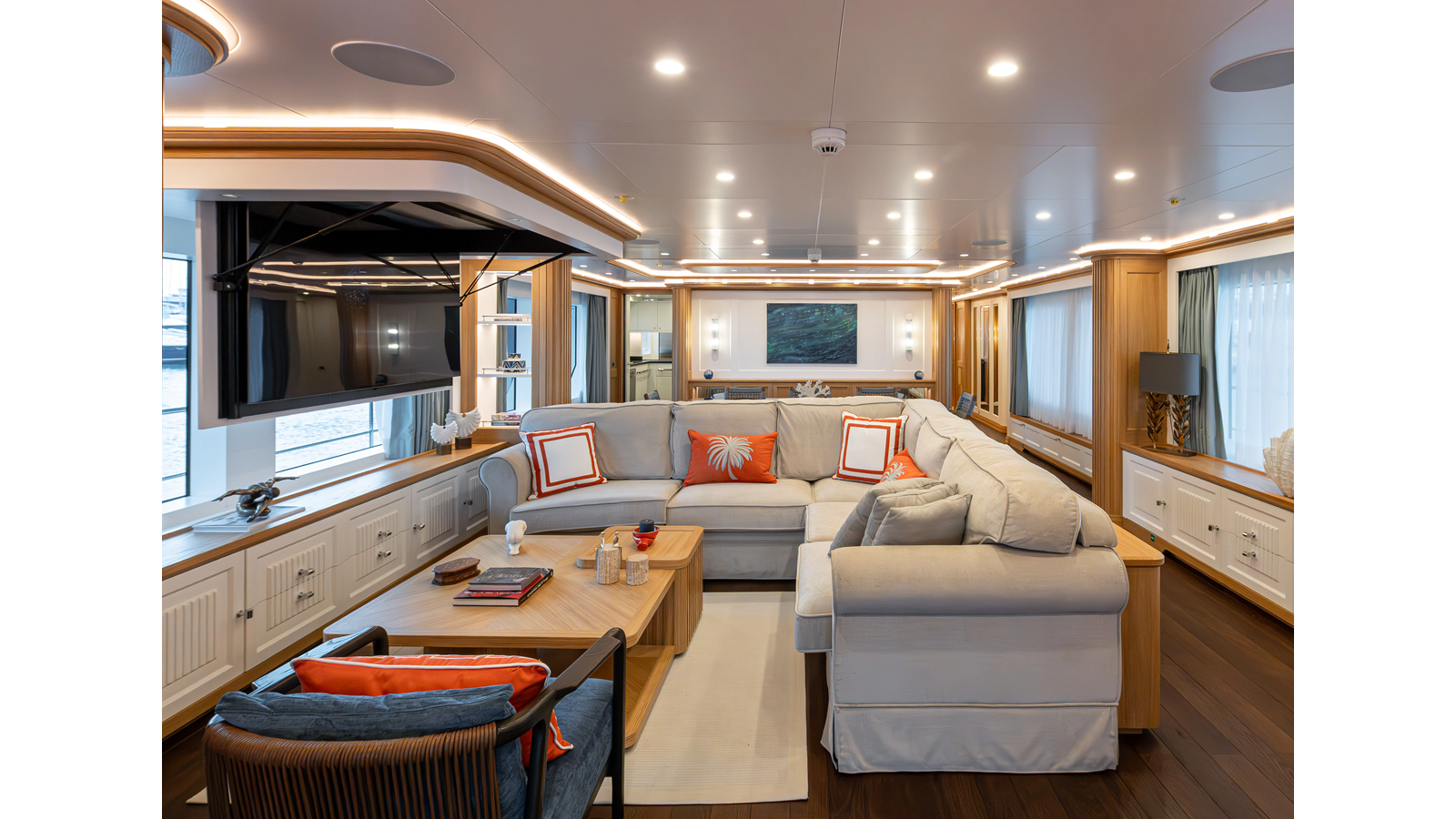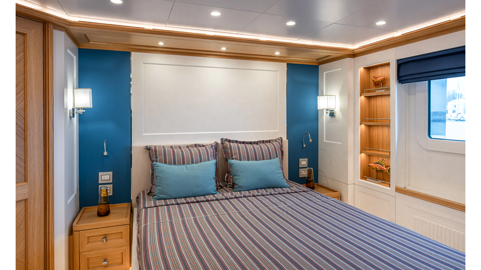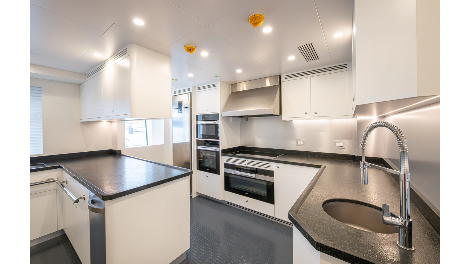 SEVEN SEAS has a classic interior decor from Epikworks, sleeps 10 guests in 5 cabins including spacious master ensuite located forward on the main deck. She has a fantasic sundeck complete with full service bar, jacuzzi, and sunpads. For day to day operations she sleeps up to 7 crew in 3 cabins located on the lower deck along with the mess area while the captain's cabin is located on the upper deck adjacent to the wheelhouse. Commercial grade galley, Atlas shorepower converters, lazzarrette area back aft for water sports/dive equipment & spare parts, proper bridge/wheelhouse.