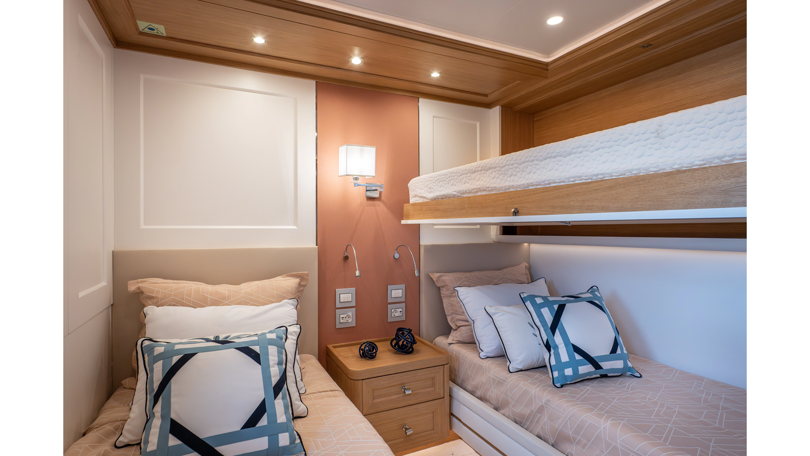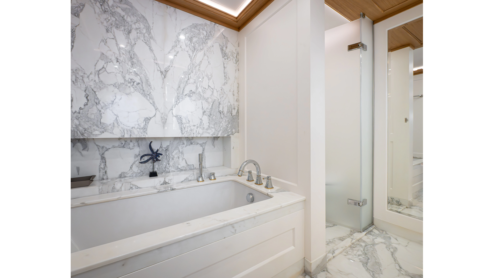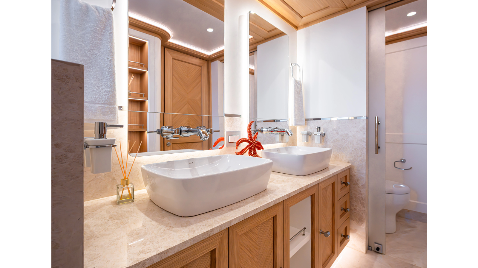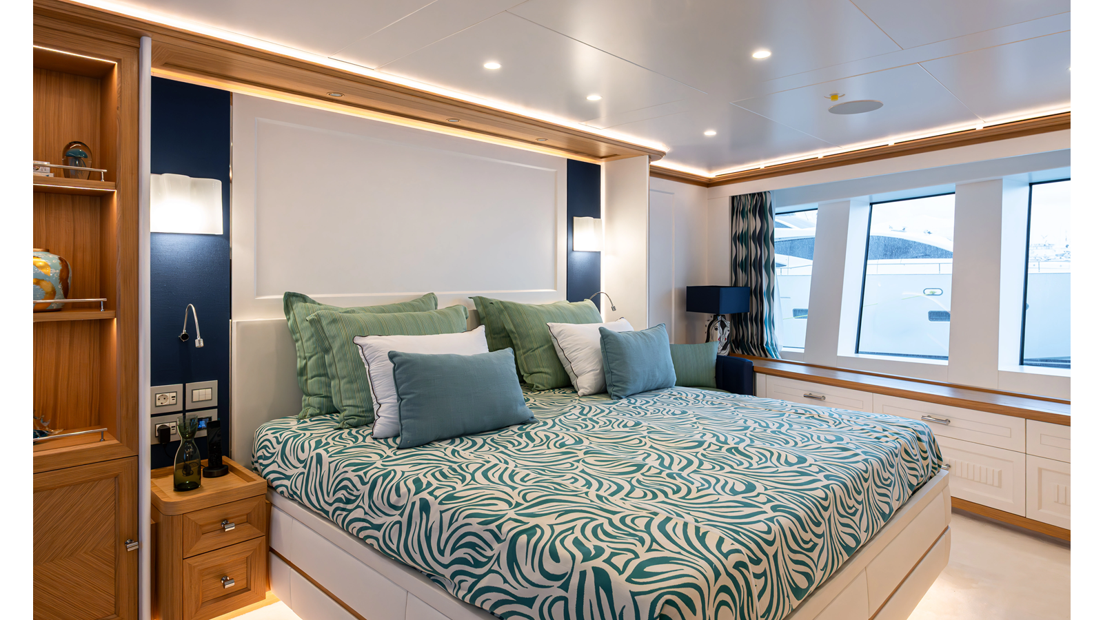 SEVEN SEAS has a classic interior decor from Epikworks, sleeps 10 guests in 5 cabins including spacious master ensuite located forward on the main deck. She has a fantasic sundeck complete with full service bar, jacuzzi, and sunpads. For day to day operations she sleeps up to 7 crew in 3 cabins located on the lower deck along with the mess area while the captain's cabin is located on the upper deck adjacent to the wheelhouse. Commercial grade galley, Atlas shorepower converters, lazzarrette area back aft for water sports/dive equipment & spare parts, proper bridge/wheelhouse.