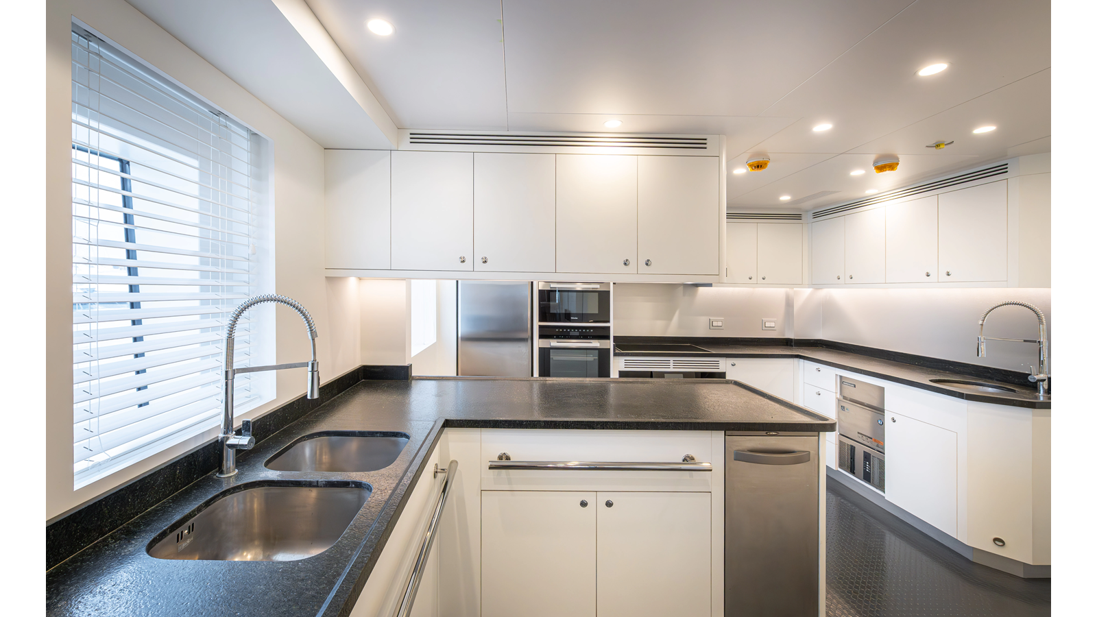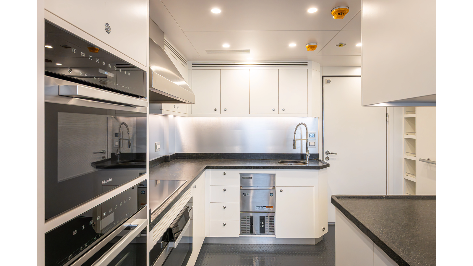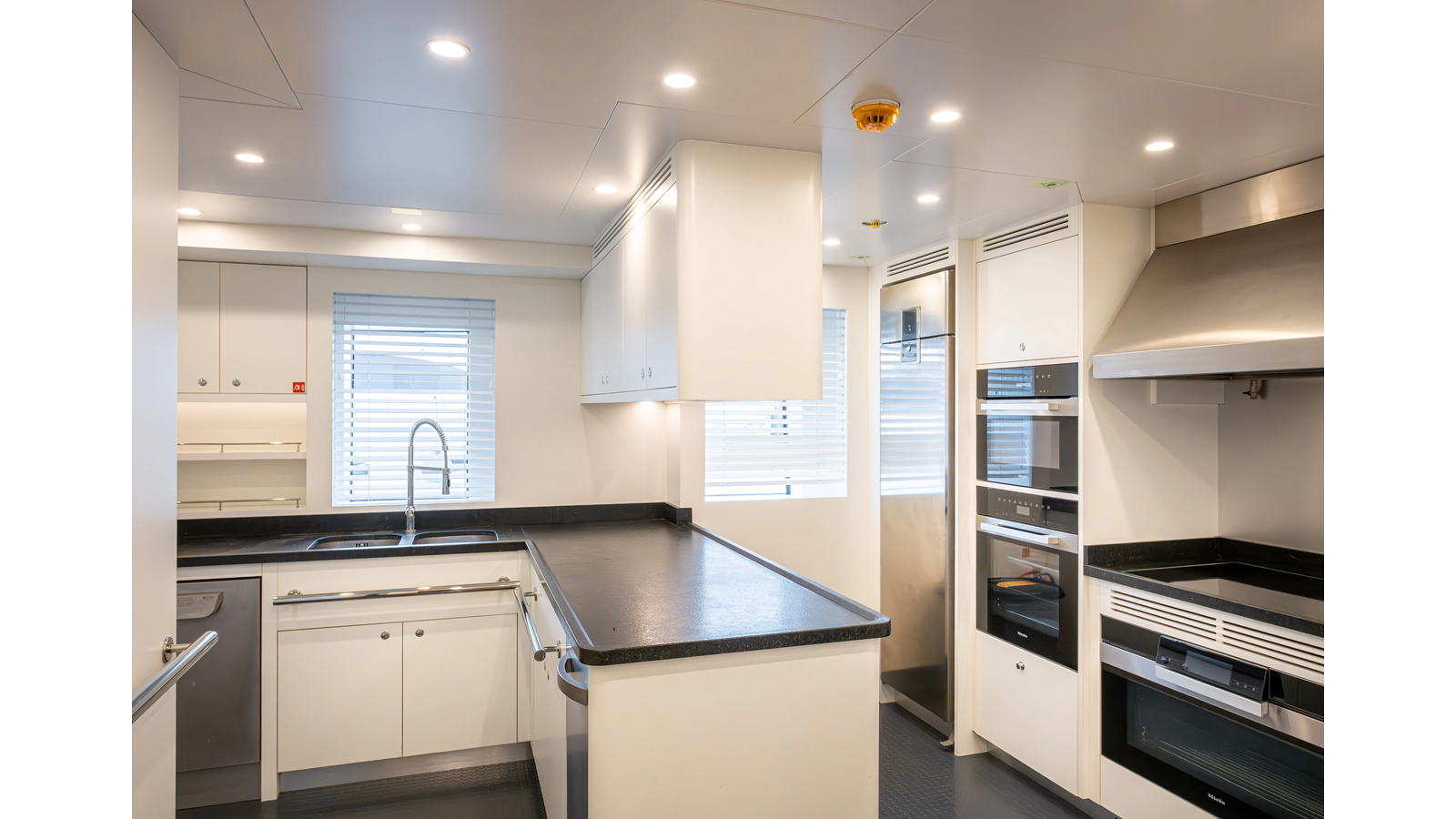 - Sprinkler: Survitech low pressure sprinkler system for accommodation, CO2 system in engine room. (2) Seawater firefighting pumps in engine room. Portable fire extinguishers in each room.