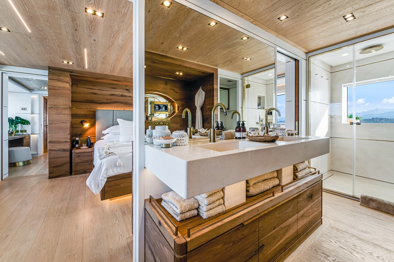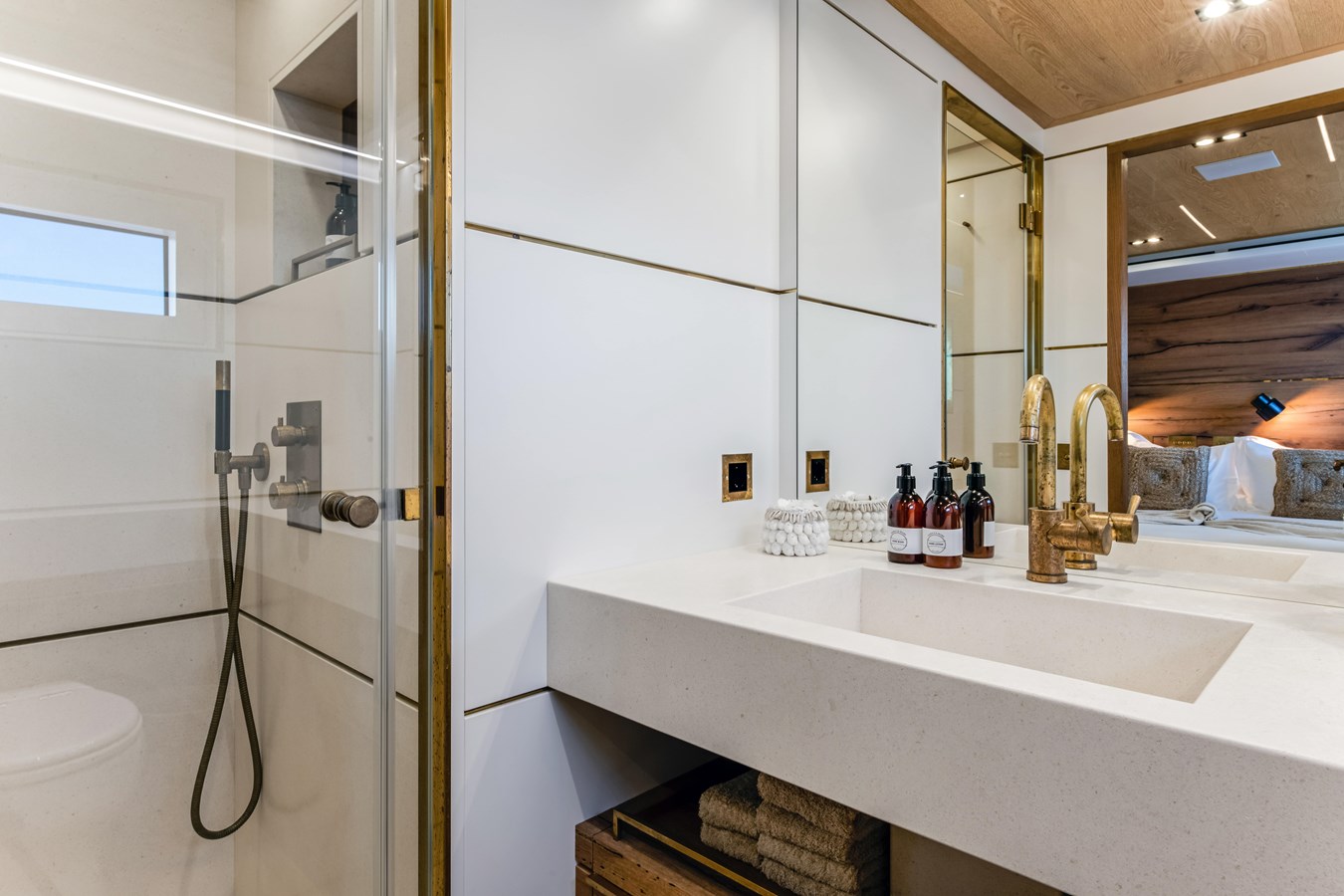 ENTERTAINMENT SYSTEMS Twin STARLINK marine antennas Wi-Fi: Upgraded to Mimo Connect bespoke 5G, 6 SIM card antenna, with Kerio control system for security Audio System: Upgraded to Arylic sound system, to enable offline direct streaming from clients’ personal devices. Apple TV: In all guest accommodation, main and upper salon, and crew area Guests able to play music in guest staterooms through Apple TV.