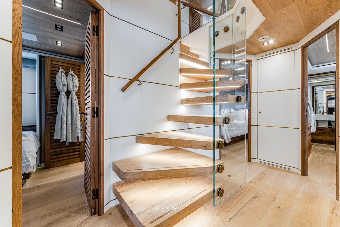1 x Master Cabin on the Main Deck 2 x Guest double VIP Cabins on the lower deck 2 x Guest Twin Cabins on the lower deck with pullman